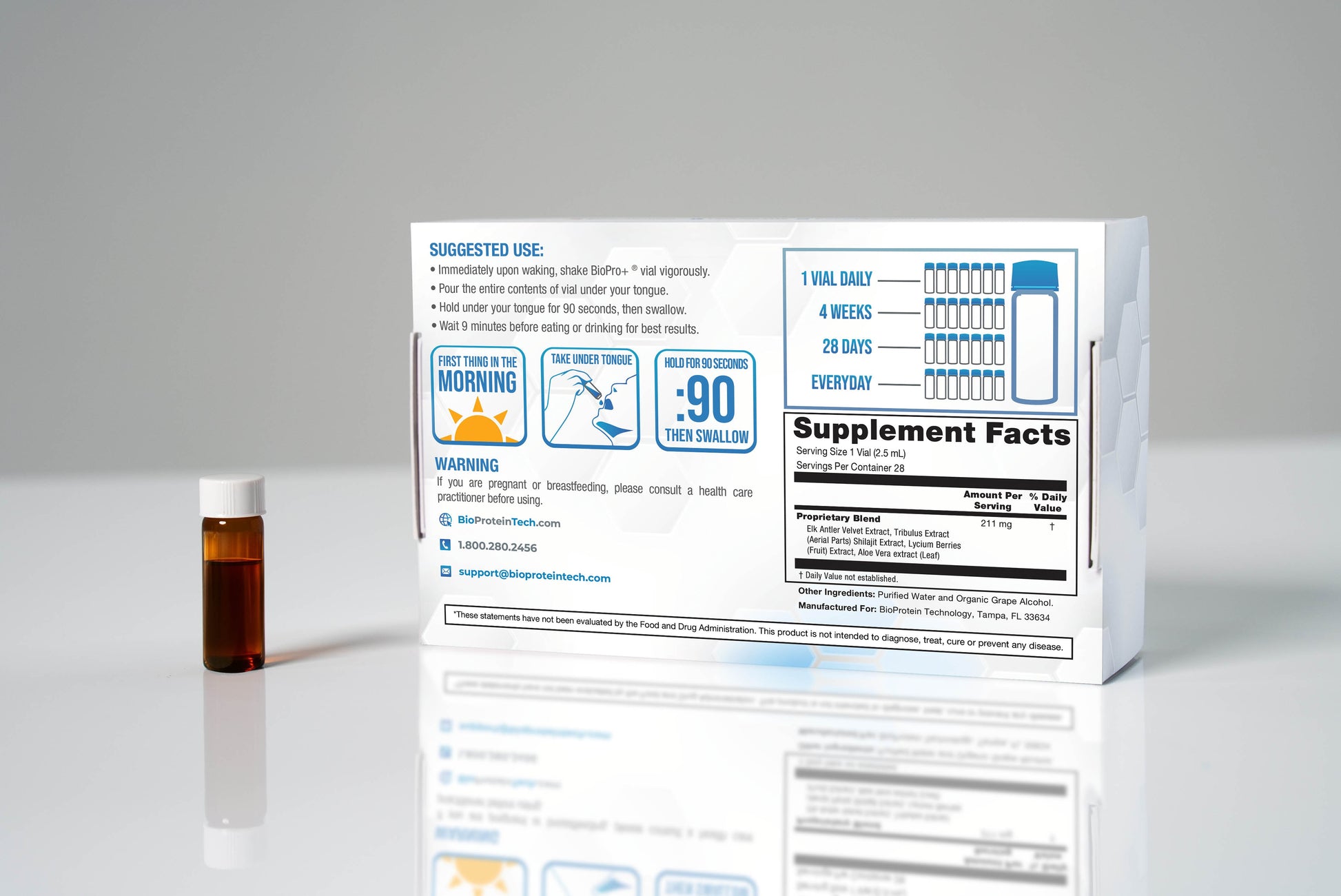 BioPro+ is 100% non-synthetic and doesn’t negatively impact your existing physiology. Generally speaking, the most popular type of these products fall into the synthetic drug category. They are typically administered through invasive protocols, like injections, and routinely are accompanied by a list of negative side effects, including but not limited to: suppression of your natural hormonal function (negative feedback loop), long term implications related to fertility, potential cardiac issues, and drug dependency to maintain normal bodily functions.